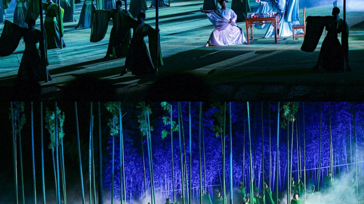 剧场:"人在画中游"——坐席的视觉半径超过二公里,四面舞台相连,可绵延出万米长卷的壮阔景象,堪称世界上第1座"山水环景剧场"。