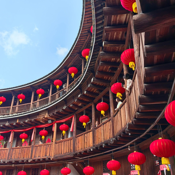 2.登土楼:观看土楼内部结构,感受客家人生活常态,登楼后视野更佳,俯瞰知名怀远楼在内的众多土楼,站在新奇角度,拍下新意照片。