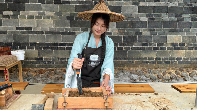 ②.心愿密码:亲手制作带个人印记的"心愿土砖"夯筑在土楼中,永续传承