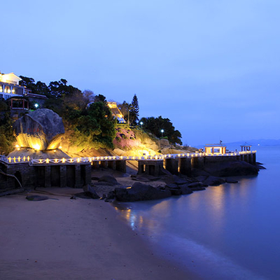 菽庄花园位于鼓浪屿岛南部,面向大海,背倚日光岩,依海建园,海藏园中,榜山为洞,垒石补山,与远处山光水色互相衬托,浑然一体。利用天然地形巧妙布局,全园分为藏海园和补山园两大部分.主要景点有钢琴博物馆、十二洞天、四十四桥。四十四桥,是非常好的观海点,可在此观海。