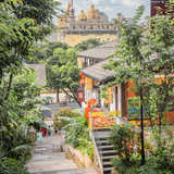 烟台山商业漫步街区依托底蕴深厚的烟台山历史文脉,打破传统封闭式商业体验,构建轻松悠然的户外艺文漫步空间,重塑时尚生活方式和独特商业价值,将历史、现代、建筑、商业、文化、艺术无界融合,互相碰撞,迸发出独特的火花,缔造出与众不同的商业新生态。