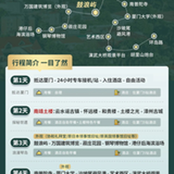 特别提示:【世遗土楼,共庆福年D1天为2月15/16/17出发班期,取消漳州古城行程,当天行程升级为土楼夜宴:非遗体验+篝火晚会+烟花等更多活动等您解锁】