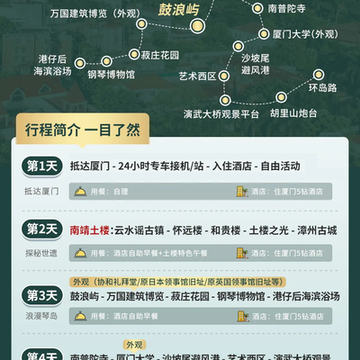 4.因厦门轮渡公司对旅行社鼓浪屿船票数量限制,重大节假日出发的班期(例五一,国庆以及春节等)不能保证黄金时间段船票,以及鼓浪屿一日具体游玩日期,以实际出票的船票日期为准,可能会进行前后调换。敬请知晓并谅解,谢谢!