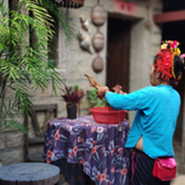 一簇簇鲜花戴在头上,像一座小小的花园,蟳埔女极看重的是自己的头饰,每逢喜庆的日子都要戴上5串到7串不同颜色的花环来庆祝,即便是寻常的日子,也不忘戴上两三串来装饰自己。今日我们特意找到蟳埔当地的阿姨,为妳盘发戴花,摇身变作明星同款蟳埔女。