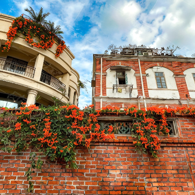 红砖白墙的小阁楼,绿色藤蔓如月下的疏影,悄悄爬上古厝椽头,无意踩在青石板上发出声响,一缕穿越千年的情愫氤氲在心间,一条条弥漫着人间烟火的街道上。